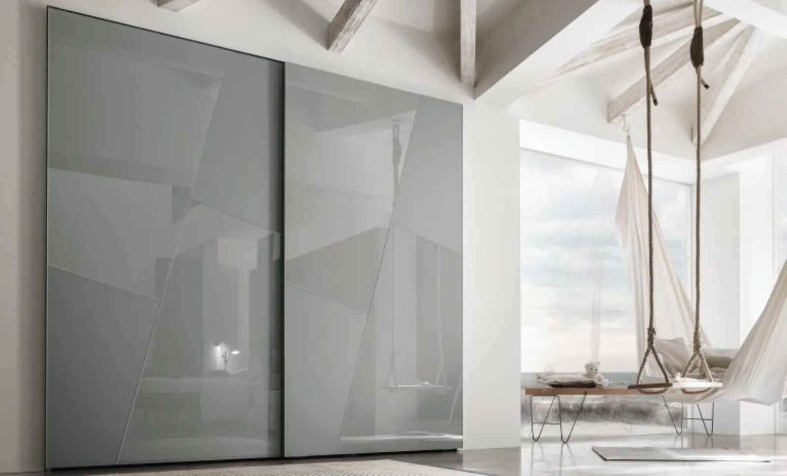 Armadio con ante scorrevoli di design in laccato opaco e vetro