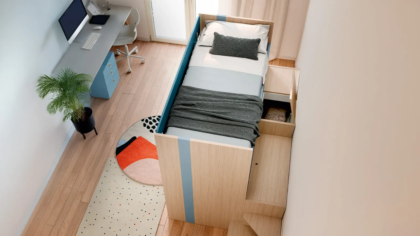 La Cameretta con letti a castello Lila di Nidi in melaminico è un mondo complesso da progettare con attenzione, coniugando differenti accessori su misura. Con una composizione arredativa Nidi, potrai completare con praticità e design lo spazio nel quale i tuoi bambini passano gli anni importanti della vita. Nidi asseconda lo stile dei bambini e le necessità dei genitori con le sue Camerette moderne con letti a castello, ideali per necessità di ogni genere. Vieni nel nostro punto vendita e potrai visionare in prima persona tutte le più belle composizioni d'arredo con letti a castello moderne di Nidi per i più giovani.