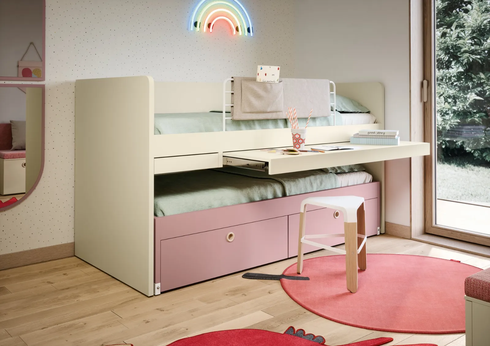 Questa soluzione con finitura in melaminico, tra quelle salvaspazio per bambine di Nidi, soddisfa le necessità degli adulti e i gusti dei piccoli. Farci visita vuol dire toccare con mano tutte le più belle soluzioni per bambine salvaspazio in melaminico che proponiamo nel nostro punto vendita. Con la Cameretta Salvaspazio Turca di Nidi renderai la stanza dei tuoi figli un interno davvero funzionale e sicuro, che li seguirà mentre crescono. Il noto brand realizza svariate soluzioni moderne, in tal modo la cameretta sarà un locale dove i piccoli possono crescere e sognare.