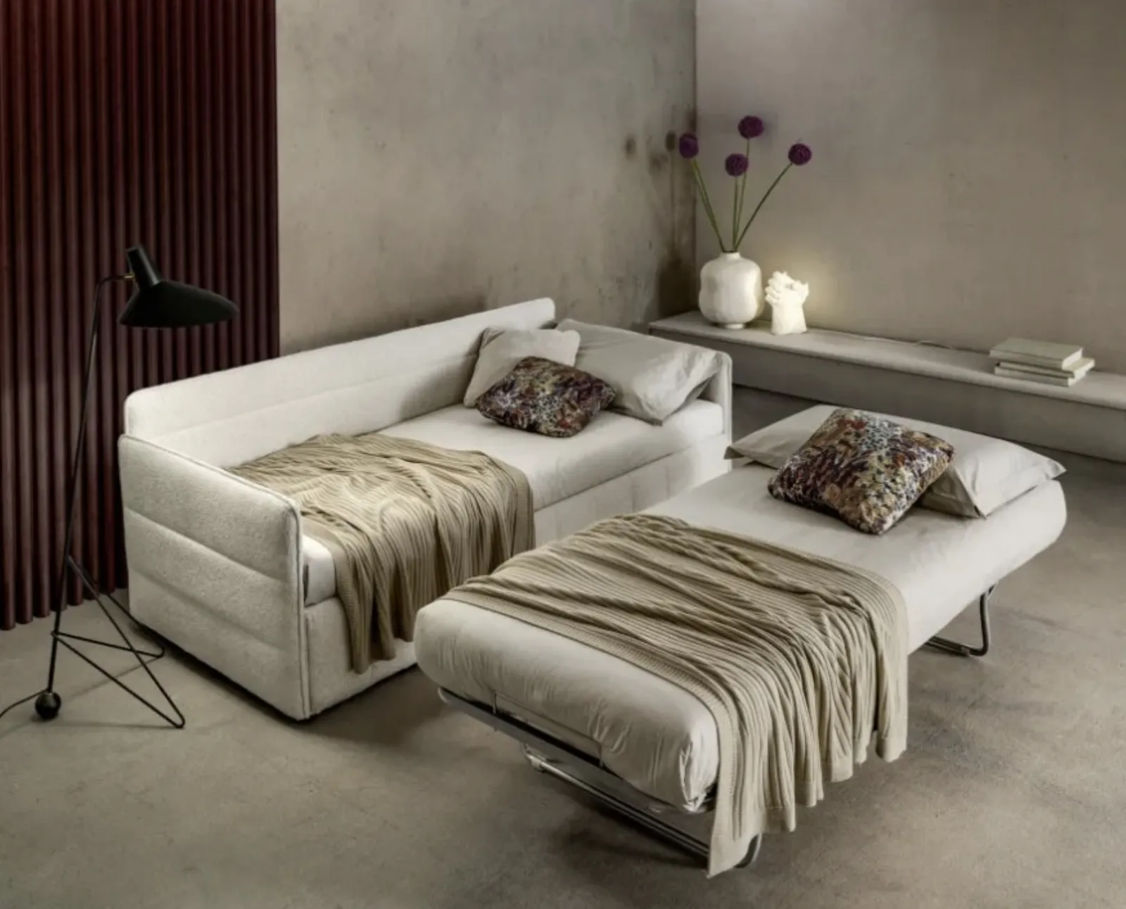 Samoa, leader nella realizzazione di divani, ha creato per il modello in foto un elegante e raffinato rivestimento in tessuto. Il salotto è i protagonisti della zona giorno di ogni casa, gli imbottiti sono elementi d’arredo attorno ai quali passare momenti di riposo e di socialità. I Salotti rappresentano un'area del living veramente essenziale, da progettare con cura posizionando divani, poltrone e pouf. Divano Letto trasformabile City di Samoa: lasciati ispirare dalle nostre proposte di imbottiti moderni che possano assicurare comfort, funzionalità e stile nel tuo living.