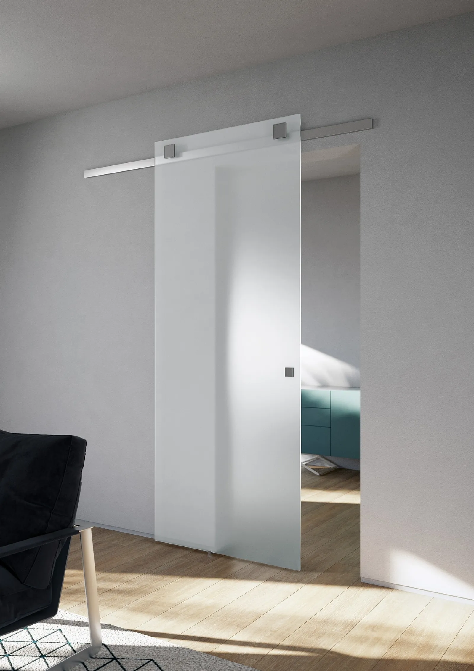 Porte per interni scorrevoli di Foa: scopri il modello in vetro Tekno Tre Cadre