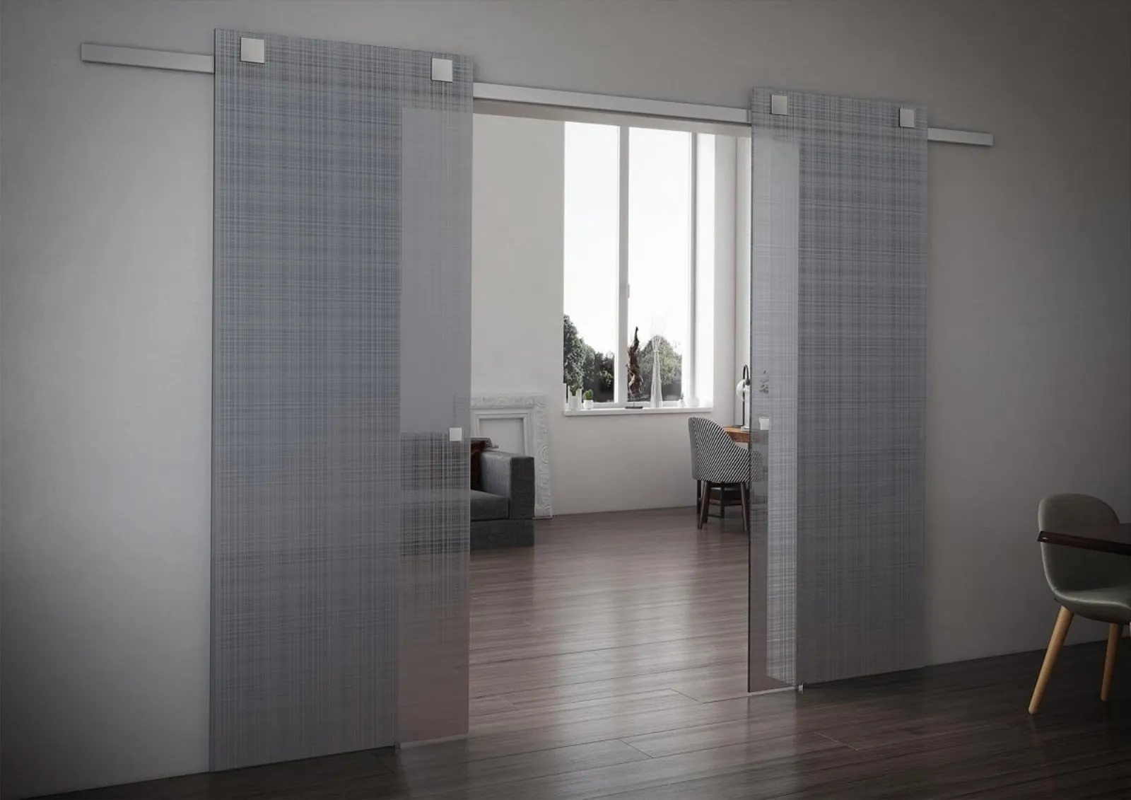 Porte interne scorrevoli di Foa: scopri il modello in vetro Tekno Tre Galles